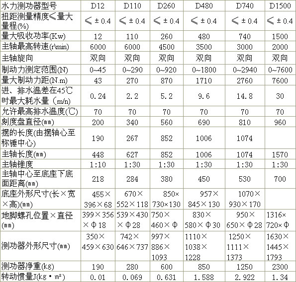 D系列(銷釘式)水力測(cè)功器的規(guī)格型號(hào)